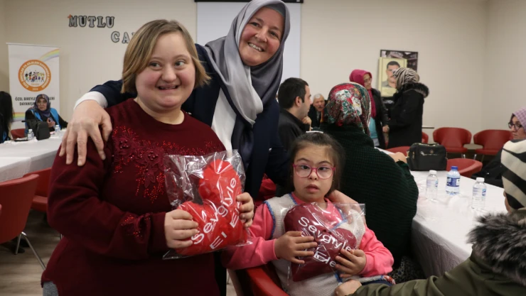 Özel gereksinimli bireylerin anneleri tarafından yapılan "Sevgiyle el ele" yastıkları, 3 Aralık Dünya Engelliler Günü'nde özel gereksinimli çocuklara hediye edildi.