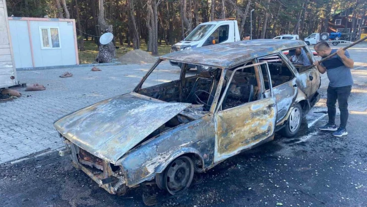 Seyir Halinde Yanmaya Başlayan Otomobil Hurdaya Döndü