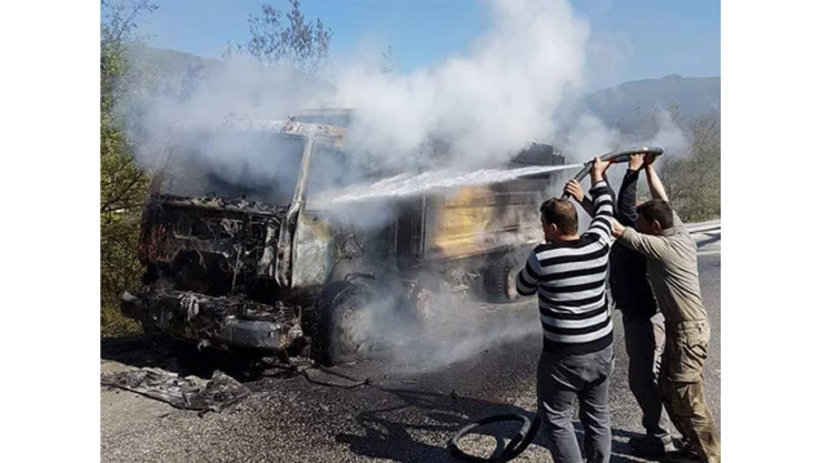 Seyir halindeki kamyon yandı