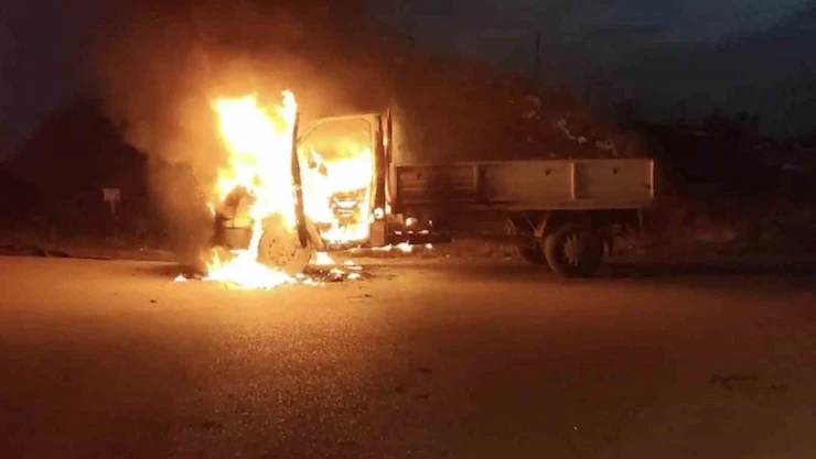 Seyir Halindeki Kamyonet Alev Alev Yandı
