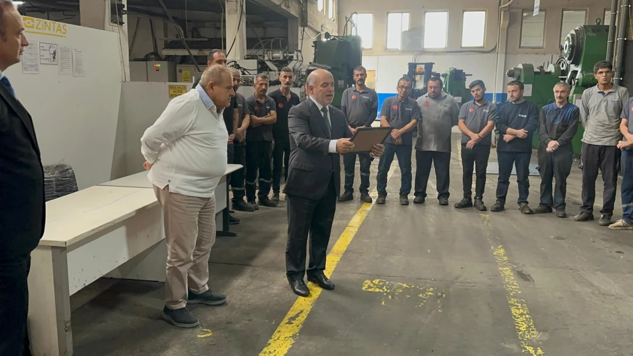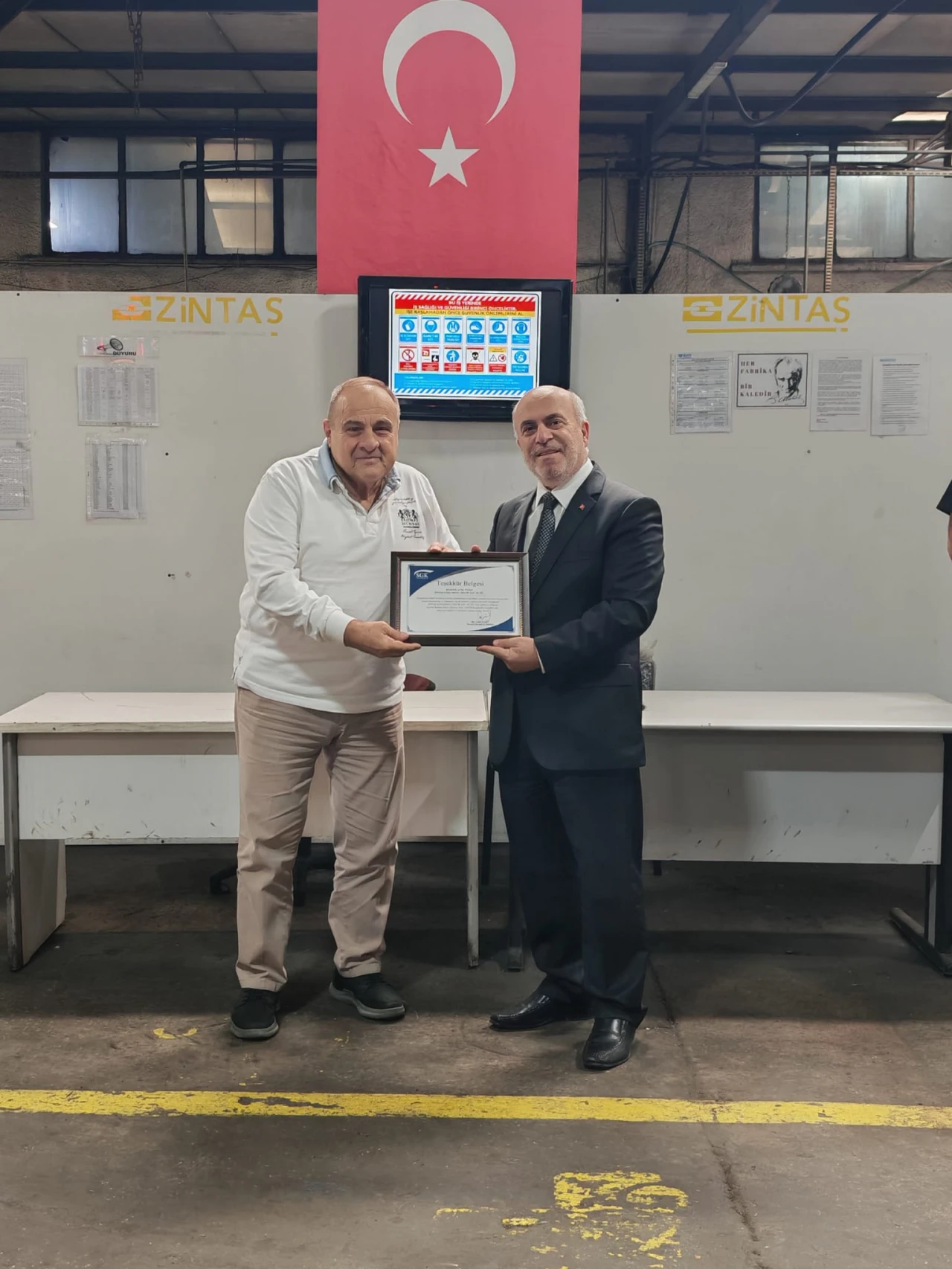 Sosyal Güvenlik Kurumu (SGK) İl Müdürlüğü tarafından 60 yıllık süre zarfından SGK'ya hiç borcu bulunmayan ZİNTAŞ Zincir Sanayi A.Ş. Sahibi Hüseyin Üster'e teşekkür belgesi verildi.