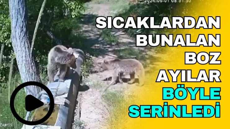 İlçeye bağlı Sabuncular köyü Kıygıncık Mahallesi'nde Hasan ve Sami Şahin'e ait evin önünde bulunan su oluğuna gelen ayı yavruları, etrafta bir süre dolaştıktan sonra suya girerek oynayıp serinledi.