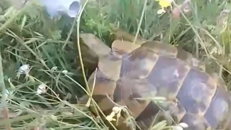 Kastamonu Ok Meydanı Mezarlığında sıcak havalardan ötürü yorgun ve bitkin düşen kaplumbağanın yardımına vatandaşlar yetişti.