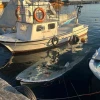 Sinop’ta limanda demirli bir kayık su alarak battı.