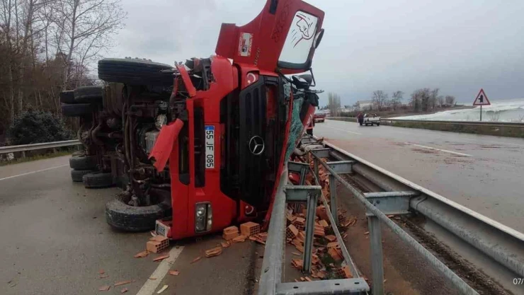 Sinop'ta Tuğla Yüklü Kamyon Devrildi: 1 Yaralı