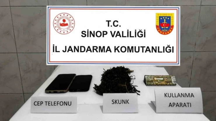 Sinop İl Jandarma Komutanlığınca uyuşturucu ve uyarıcı madde satıcıları ile mücadeleye yönelik yapılan çalışmalar kapsamında, Durağan ilçesinde 55 plakalı araçta yapılan adli aramada 40,73 gram skunk, 1 adet uyuşturucu kullanma aparatı ve 2 adet cep telefonu ele geçirildi. Olay ile ilgili yakalanan 2 şüpheli hakkında adli işlem başlatıldı.