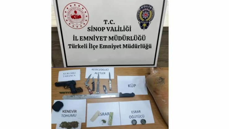 Sinop’un Türkeli ilçesinde bir adreste ve araçta yapılan aramalarda uyuşturucu madde ve kesici aletler ele geçirildi.