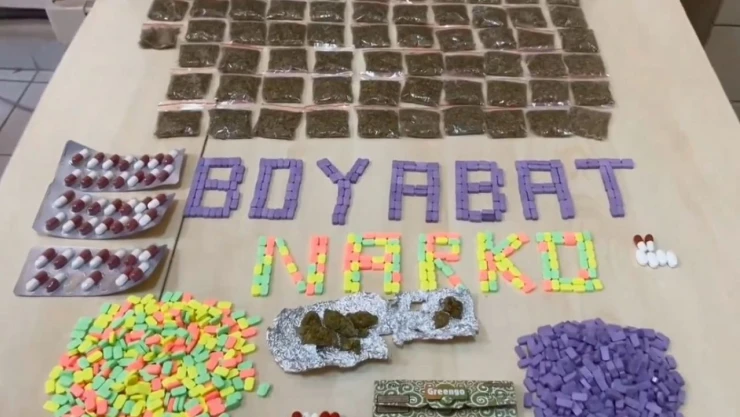 Boyabat İlçe Emniyet Müdürlüğü ekiplerince uyuşturucu madde satıcılarına yönelik operasyon düzenlendi. Gerçekleştirilen operasyonda bin 287 adet ecstacy, 162,49 gram (65 paket) sentetik kannabinoid (bonzai), 57 adet sentetik ecza maddesi, 4,92 gram mariana maddesi ve 1 adet içinde uyuşturucu madde olduğu değerlendirilen sigara ele geçirildi. Yakalanan 3 şüpheli şahıs çıkarıldığı adli makamlarca tutuklanarak cezaevine teslim edildi.
