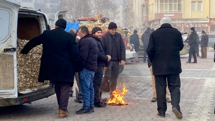 Avrupa Birliği (AB) ve Türkiye'den coğrafi işaret tescili alan Taşköprü sarımsağı için kurulan pazar, soğuk ve sisli havaya rağmen devam ediyor.