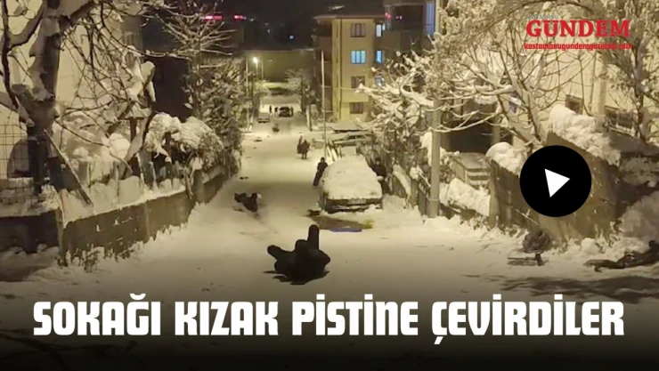 Kastamonu'nun Cide ilçesinde sokağı kayak pistine çeviren çocuklar, poşet, tepsi ve kızaklarla kayarak doyasıya eğlendi.