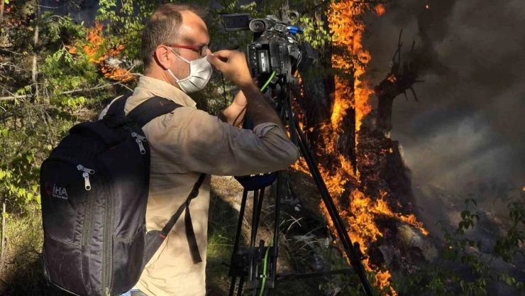 Yaklaşık 5 saattir süren yangını söndürmek için ekipler canla başla çalışmalarını sürdürürken, arazözlerin giriş yapamadığı alanlara iş makinesi yardımıyla yol açıldı.