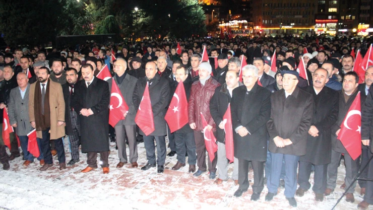 İstanbul’da düzenlen hain saldırı sonucunda Kastamonu halkı tek yürek olarak teröre tepkilerini göstermeye devam ediyor. Ülkü Ocakları tarafından dün düzenlenen teröre lanet yürüyüşünde binlerce kişi sokağa aktı. Hiçbir siyasi ayrım gözetmeksizin gerçekleşen yürüyüşe AK Parti İl Başkanı Halil Uluay, CHP İl Başkanı Muzaffer Bıyıklı, MHP İl Başkanı Hacı İbrahim Maşalacı, BBP İl Başkanı Mehmet Ali Aydar, Ülkü Ocakları Başkanı Resul Köprülü, Türkiye Harp Malülü Şehit Dul ve Yetimleri Derneği Şube Başkanı Berat Satıoğlu, STK temsilcileri ve yüzlerce vatandaş katıldı. “İDAM YASASININ GERİ GETİRİLMESİNİ İSTİYORUZ” Saygı duruşu ve İstiklal Marşı’nın okunması ile başlayan program şehitleri için sela okunması ve edilen dualarla devam etti. Ülkü Ocakları Başkanı Resul Köprülü, katılımlarından dolayı herkese teşekkür ederek; “Kan ve gözyaşı ile beslenen terör hain ve alçak yüzünü bu kez de İstanbul’da göstermiş, iki ayrı bombalı saldırıda 44 vatan evladımızı şehit etmiştir. Yapılan resmi açıklamaya göre, bu futbol maçı için görevlendirilen polislerimize yapılan bu saldırıyı şiddete kınıyoruz. Birçok anne ve baba evlatlarını, evlatlar babalarını, büyük Türk Milleti de kahramanlarını kaybetmişlerdir. Bin bir umutla büyüttükleri, yeşerttikleri umutlarını kaybeden anne ve babalar, onların yanında dimdik ayakta duran bir Kastamonu görüyorum. Her zaman her yerde, her şartta aziz milletimize saldıran, kahpece tuzaklar kuran, Türk Milleti’nin evlatlarını hedef alan hain terör örgütüne ve bu milletin birliğine kast eden bütün terör örgütlerine karşı idam yasasının geri getirilmesini istiyoruz. Bedeli ne olursa olsun, ismi ne olursa olsun, birliğimize, dirliğimize kast eden bütün hainlerin tek tek darağacında sallandırılmasını istiyoruz. Ayağındaki delik ayakkabısıyla şehit babasının cenazesine katılan yavrumuzu unutmayacağız. O yavrularımızın acını unutursak, aldığımız nefes, yediğimiz lokma bizlere haram olsun. Şehit olanlarına Allah’tan rahmet, Türk Milleti’ne başsağlığı diliyorum. Bizim andımız bir, anımız bir, acımız bir, biz büyük bir aileyiz. Kuzeyden güneye, doğudan batıya tek yüreğiz, tek bireyiz, biz Türkiye’yiz. Bizi sindireceklerini düşünenler, devletimize diz çöktüreceklerini düşünenler, biz bir ölür, bin diriliriz. Bir gider, bin geliriz. Varlığımız Türk varlığına armağan olsun. Ne Mutlu Türk’üm diyene” dedi. Meydandaki programın ardından yüzlerce kişi polislere destek vermek için Cumhuriyet Meydanı’ndan Emniyet Müdürlüğü’ne sloganlar eşliğinde yürüyüşe geçti. Çevredeki vatandaşlar evlerinde alkışlayarak yürüyüşe destek verdi. Emniyet Müdürlüğü’ne gelindiğinde Ülkü Ocakları Başkanı Resul Köprülü tarafından, polislere Türk Bayrağı ve Kur’an-ı Kerim takdim edildi. Akabinde Cumhuriyet Meydanı’na doğru gerçekleşen yürüyüşün ardından program son buldu.