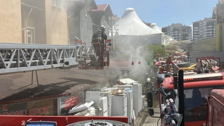 Kuzeykent İş Merkezi'ndeki ikinci el beyaz eşya satışı yapılan iş yerinde çıkan yangın, itfaiye ekipleri tarafından diğer iş yerlerine sıçramadan söndürüldü.