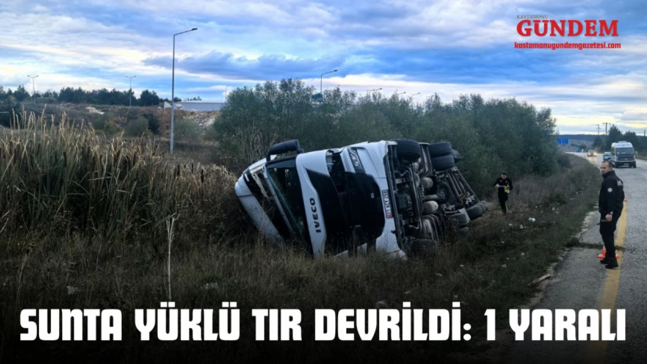 Sunta Yüklü Tır Devrildi: 1 Yaralı