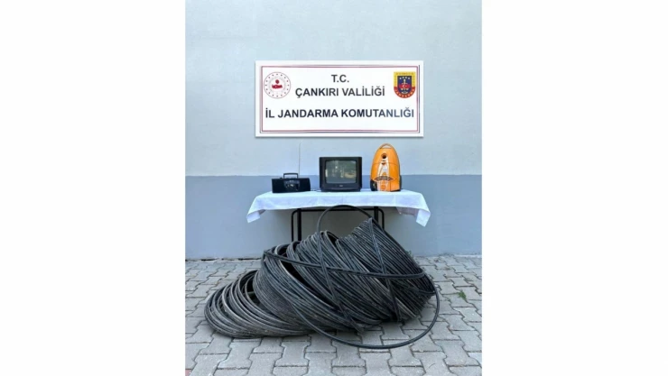 Çankırı'da farklı ikametlerden haberleşme ve enerji nakil hattı kablolarını çalan hırsızlık şüphelileri jandarma ekipleri tarafından yakalandı.