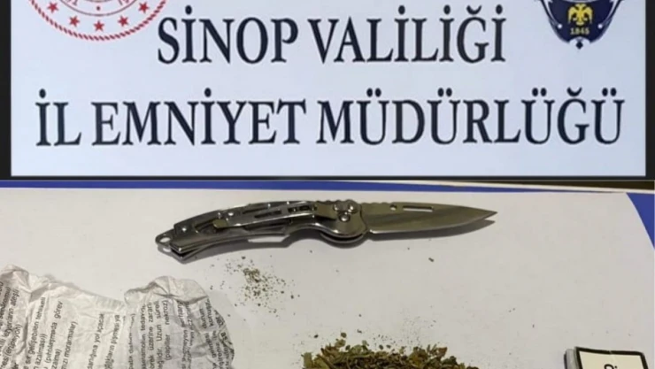 Edinilen bilgiye göre, Gerze İlçe Emniyet Müdürlüğüne gelen bir ihbar üzerine polis ekipleri harekete geçti. Şüpheli şahıs polis ekiplerince kısa sürede bulundu. Şahsın yapılan üst aramasında 3 gram esrar maddesi, 1 adet bıçak ele geçirildi. Şüpheli hakkında yasal işlem başlatıldı.