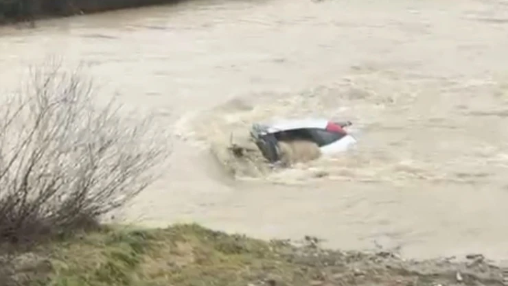Edinilen bilgiye göre, Karaköy mevkisinde kimliği ve plakası henüz öğrenilemeyen sürücü, iddiaya göre otomobiliyle dere kenarına inmek istedi. Zeminin kaygan olması nedeniyle sürücüsünün direksiyon hakimiyetini kaybettiği araç, kayarak dere yatağına devrildi.