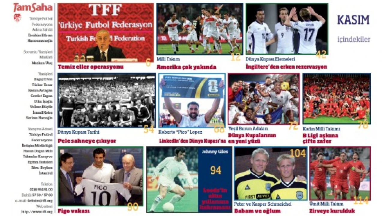 Ayrıca, "Dünya Kupası Elemeleri: İngiltere erken rezervasyon yaptı", "Dünya Kupası Tarihi-3: Pele sahneye çıkıyor", "Kadın Millî Takımı: B Ligi aşkına çifte zafer", "Ümit Millî Takım: Zirveye kurulduk", "Roberto "Pico" Lopes: LinkedIn'den Dünya Kupası'na", "Yeşil Burun Adaları: Dünya Kupalarının en yeni yüzü", "Figo vakası", "Peter ve Kasper Schmeichel: Babam ve oğlum", "Johnny Giles: Leeds'in altın yıllarının kahramanı", "İsmail Gökçek: Saygı" dosyaları ile TamSaha'nın 252. sayısında da futbol kültürünün değişik konularıyla farklı bir içerik yer alıyor.