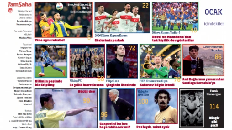 TamSaha dergisinin 2026 Ocak sayısı yayında. Dünya ve Türkiye futbolunun gündemindeki konuları ele alan derginin 254. sayısı da dopdolu.