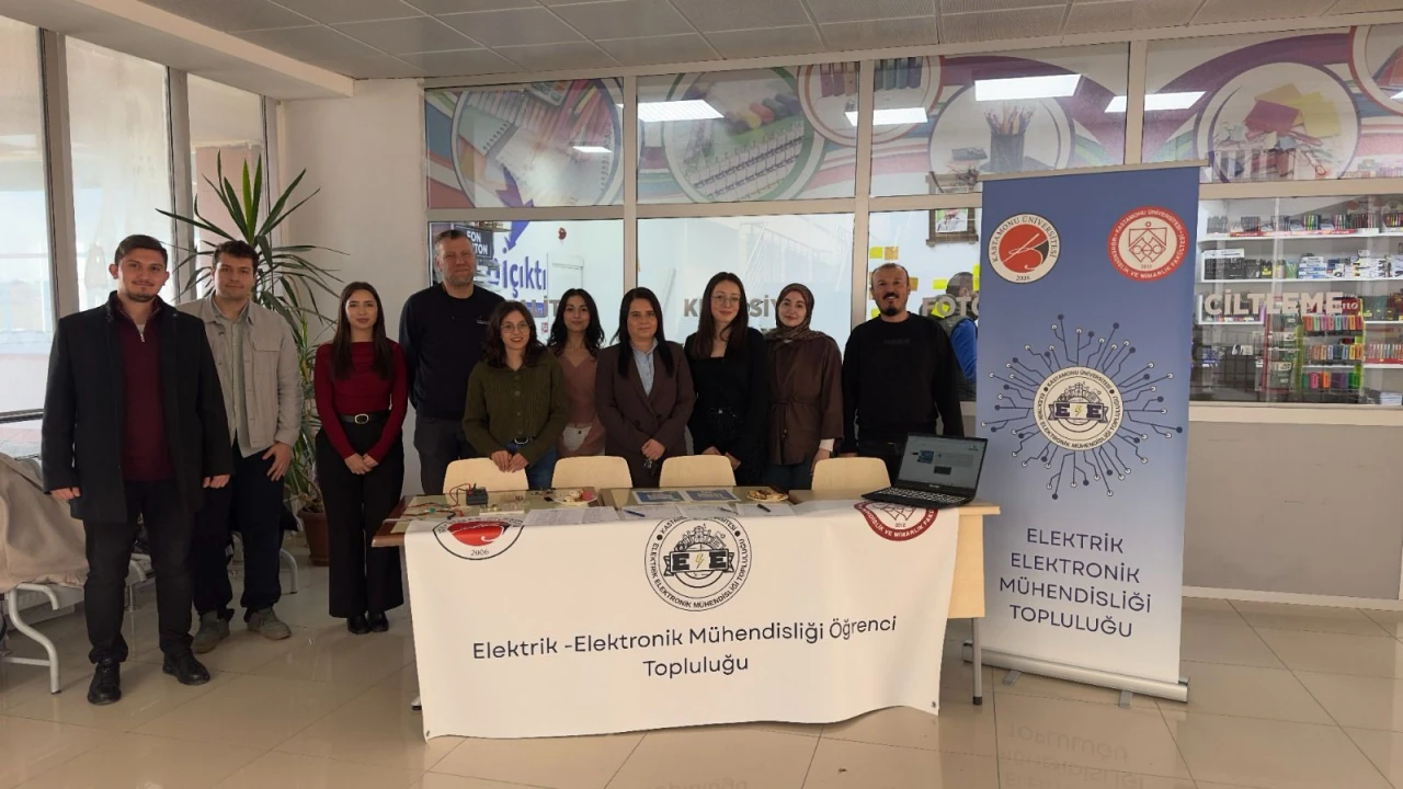 Elektrik ve Elektronik Mühendisliği Öğrenci Topluluğu tarafından Mühendislik ve Mimarlık Fakültesi'nde tanıtım ve stant etkinliği gerçekleştirildi. Gün boyunca kurulan stantta öğrencilere topluluğun amaçları, yürütülecek çalışmalar ve dönem içinde planlanan etkinlikler hakkında bilgiler verildi.