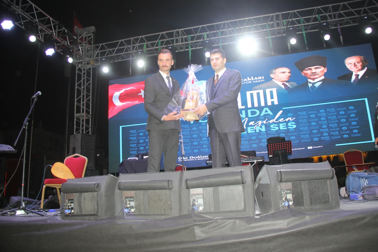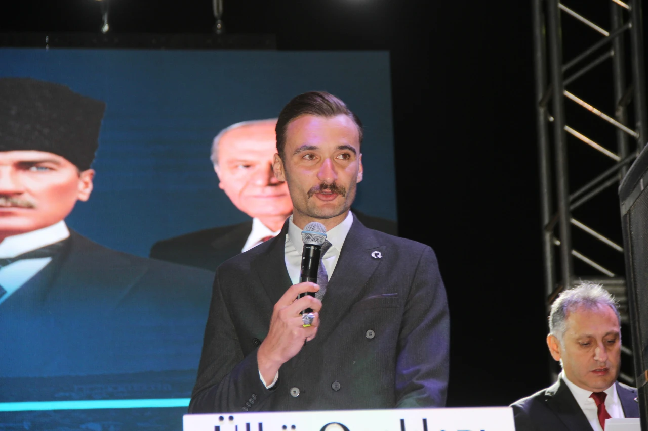 Programın açılış konuşmasını yapan Ülkü Ocakları Başkanı Yusuf Ekşioğlu; “Bu akşam “Kızılelma Yolunda Maziden Gelen Ses” isimli programımızda, bir araya gelmenin gururunu ve heyecanını yaşıyorum. Bu anlamlı buluşma, bizlere sadece bir konser değil, aynı zamanda milletimizin ruhunu, tarihimizin derinliğini ve ülkücü hareketin sarsılmaz iradesini hatırlatan kutlu bir meclistir. Kıymetli kardeşlerim; bizim için Kızılelma, sadece bir menzil değil, bir idealdir. O, Türk milletinin bin yıllardır süregelen cihan yürüyüşünün hedefi, ecdadımızın yüreklerinden bizlere miras kalan kutsal bir ülküdür. Kızılelma, Malazgirt’teki iman, İstanbul’daki fetih, Çanakkale’deki direniş, Sakarya’daki şahlanış demektir. Kızılelma, Türk’ün geleceğe olan inancı, Türk dünyasının birliği, mazlumların umudu, zalimlerin korkusudur. Ülkücülük ise, işte bu kutlu davanın adıdır. Ülkücülük, ‘önce ülkem ve milletim’ diyebilmenin şuurudur. Ülkücülük, milletin bekasını kendi menfaatlerinin üzerinde tutmaktır. Ülkücülük, Türk-İslam ülküsünü bayraklaştırmak, ezelden ebede taşımaktır. Bizim yolumuz, imanla yoğrulmuş, töreyle beslenmiş, millet sevdasıyla güçlenmiş bir yoldur. Bizim davamız, “önce vatan, önce millet, önce devlet” diyenlerin davasıdır. Türk gençliği bugün burada, işte bu ruhla bir araya gelmiştir. Bizim gayemiz, sadece geçmişi yad etmek değil, aynı zamanda geleceği inşa etmektir. Çünkü biliyoruz ki, maziden gelen her ses, geleceğe uzanan bir çağrıdır. Ve biz bu çağrıya kulak veriyor, Türk milletinin istikbali için var gücümüzle çalışıyoruz. Bu akşam bizlere sazıyla, sözüyle, yüreğiyle eşlik edecek olan kıymetli sanatçılarımıza; gönüllerimize ülkü ateşi taşıyan Ozan Ahmet Taşkın’a, Türk kadınının sesi olan Burçe Bozkurt’a ve hepimizin gönlünde ayrı bir yeri olan, eserleriyle gönüllerimizi dirilten Ali Kınık Bey’e hoş geldiniz diyor, teşekkür ediyorum. Ayrıca, bu anlamlı programımıza destek veren tüm kıymetli sponsorlarımıza da teşekkürü bir borç biliyorum. Aziz dava arkadaşlarım, sözlerimi Başbuğumuz Alparslan Türkeş’in veciz ifadeleriyle tamamlamak istiyorum: “Türk milletinin geleceği Türk gençliğinin elindedir.” Unutmayalım ki; Hedefimiz: Kızılelma! Yaşasın Türk milleti! Var olsun Ülkü Ocakları! Ne mutlu Türk’üm diyene! Hepinizi Allah’a emanet ediyor, saygılar sunuyorum” dedi.