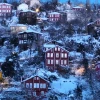 İnebolu’da tarihi ahşap evler, kar yağışıyla beyaza büründü.