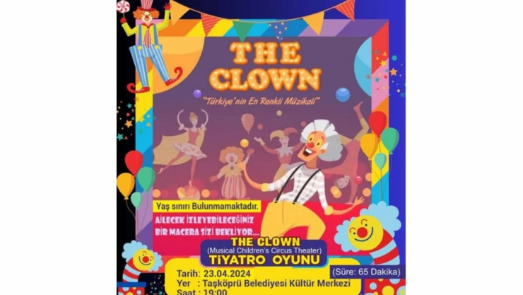 The Clown ( Musical Children’s Circus Theater) adlı Tiyatro oyunu, Taşköprü Belediyesi Kültür Merkezi'nde 23 Nisan Salı günü akşam saat 19.00'da sahne alacak.
