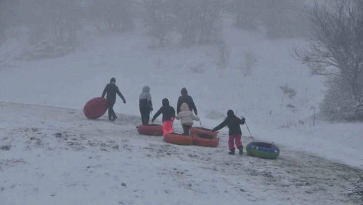 Bolu'da kar kalınlığının 15 santimetreyi bulduğu Abant Gölü Milli Parkı'na gelen tatilciler, soğuk havaya rağmen doyasıya eğlendi.