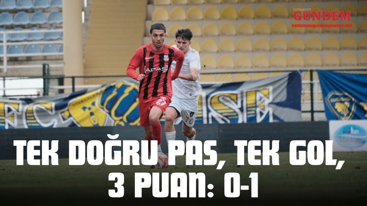 Saha zeminin aşırı kötü olmasından dolayı her iki takım oyuncuları da istedikleri oyunu sahaya koymakta zorluk çekti. Her iki takımda maçın genelinde ciddi pas hataları yaptı. Özellikle kritik anlarda yapılan pas hataları her iki takımında gol pozisyonlarına girmesine engel oldu. Maçtaki tek doğru pas karşılaşmanın 73’üncü dakikasında Ahmethan Köse’den geldi. Ahmethan’ın pasını doğru bir şekilde değerlendiren Kadir Ari, temsilcimiz GMG Kastamonuspor’a 3 puanı getiren golü kaydetti.