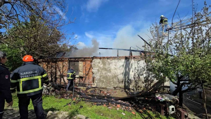 Karabük’te henüz nedeni belirlenemeyen bir şekilde çıkan yangından tek katlı bir ev alevlere teslim oldu.