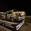 TEM Otoyolu Bolu Dağı Tüneli çıkışında bariyerlere çarpan otomobil hurdaya döndü. Kazada 1’i ağır 3 kişi yaralandı.