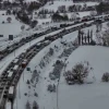 TEM Otoyolu’nun Bolu geçişinde etkili olan yoğun kar yağışı sebebiyle kayan tırlar nedeniyle ulaşım durdu. Ankara ve İstanbul istikametinde trafik tamamen kilitlenirken, yolda kalan yüzlerce araç havadan görüntülendi.