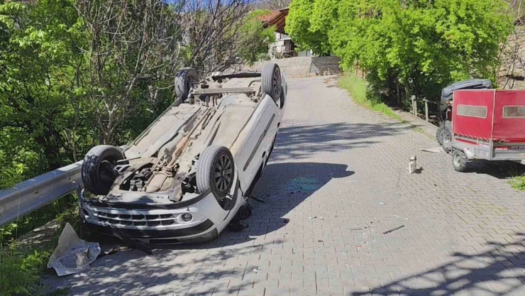 Ters Dönen Otomobilden Yara Almadan Kurtuldu
