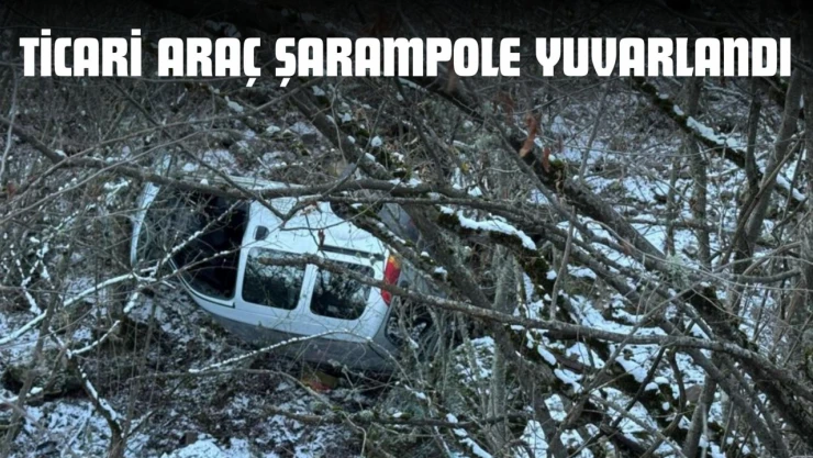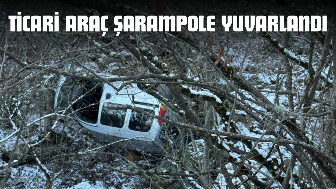 Kastamonu'nun Hanönü ilçesinde buzlanan yoldan çıkarak yaklaşık 20 metrelik şarampole yuvarlanan hafif ticari aracın sürücüsü yara almadan kurtuldu.