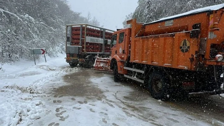 Ara ara kar yağışının devam ettiği yolda, ekipler sürücülere dikkatli olmaları konusunda uyarılarda bulundu.