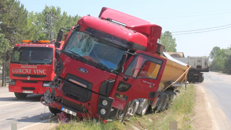 Taşköprü yolu 1’inci meydana gelen trafik kazası yürekleri ağza getirdi. 2 TIR’ın karıştığı kazada yaralanan olmadı. Edinilen bilgiye göre; Taşköprü’den Kastamonu istikametine seyir halinde olan 2 TIR birbirilerini geçmek istedikleri esnada çarpıştı. Çarpışmanın etkisiyle savrulan TIR’lardan bir tanesi orta refüje doğru sürüklendi. Orta refüje çıkan TIR yan yatmak üzere iken durdu. Araç içinde kalan sürücülerin yardımına bölgede görevli olan polis memurları koştu. Polis memurlarının yardımı ile araç içerisinden çıkarılan sürücüler kazayı yara almadan atlattılar. Yaşanan kaza sonrasında emniyet güçleri çevrede güvenlik önlemleri alarak, 2’nci bir kaza yaşanmasını engellediler. Kaza nedeniyle yol bir süreliğine trafiğe kapanırken, TIR’lar çekici yardımıyla kaza mahallinden kaldırıldı. TIR’ların yoldan kaldırılmasıyla yol tekrardan trafiğe açıldı.