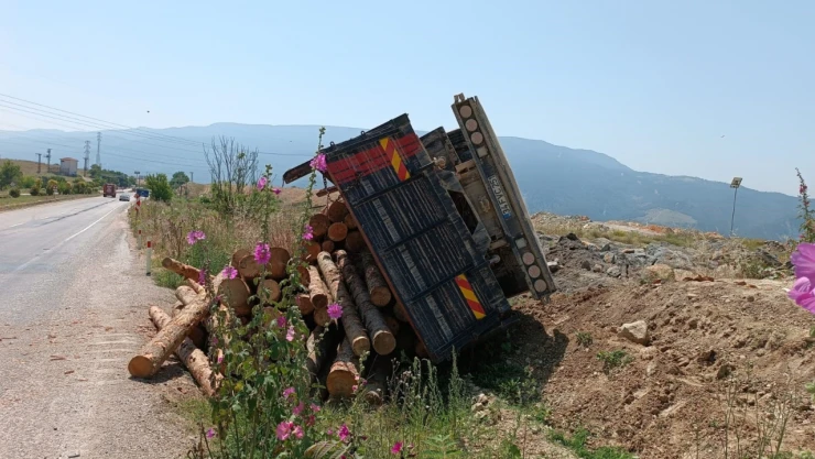 Tomruk yüklü kamyon devrildi: 2 yaralı