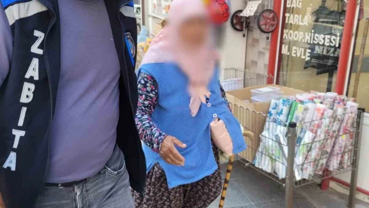 Zabıta ekipleri tarafından dilencilik yaparken yakalanan yaşlı kadının topladığı paralar çantasındaki ilaç kutusundan çıktı.