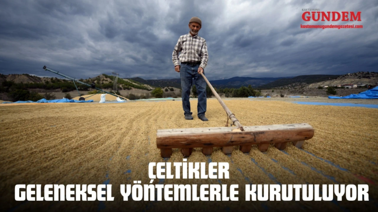 Pirinciyle ünlü ilçesi Tosya'da çeltikler geleneksel yöntemlerle kurutulmaya devam ediyor.