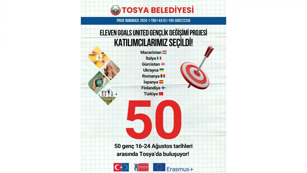 Tosya Belediyesi’nin düzenlediği “Eleven Goals United Gençlik Değişimi Projesi” kapsamında 50 genç, Tosya’da bir araya gelecek.