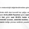 Bartın Valiliği’nden yapılan açıklamada, ’Yapılan son meteorolojik değerlendirmelere göre, ilimiz genelinde etkili olan kuvvetli kar yağışı ve buzlanma riski nedeniyle 19.01.2026 Pazartesi günü saat 08.00’den 20.01.2026 Salı günü saat 08.00’e kadar motosiklet, scooter, elektrikli scooter, elektrikli bisiklet, bisiklet ve motokuryelerin trafiğe çıkması tedbiren yasaklanmıştır. Kamuoyuna saygıyla duyurulur’’ ifadeleri kullanıldı.