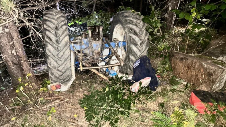 Kastamonu Hanönü'nde orman kesiminden dönen ailenin bulunduğu traktör, 20 metrelik uçuruma yuvarlandı.