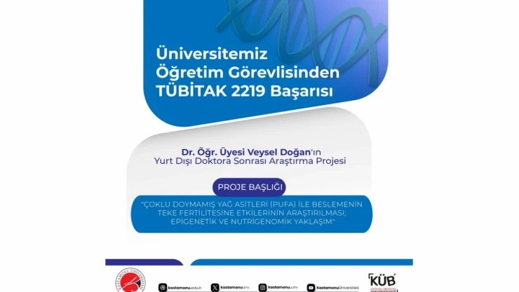Kastamonu Üniversitesi Veteriner Fakültesi Hayvan Besleme ve Beslenme Hastalıkları Anabilim Dalı Öğretim Üyesi Dr. Öğr. Üyesi Veysel Doğan'ın “Çoklu Doymamış Yağ Asitleri (PUFA) ile Beslemenin Teke Fertilitesine Etkilerinin Araştırılması; Epigenetik ve Nutrigenomik Yaklaşım” adlı 2219 Yurt Dışı Doktora Sonrası Araştırma Projesi Türkiye Bilimsel ve Teknolojik Araştırma Kurumu (TÜBİTAK) tarafından desteklenmeye hak kazandı.