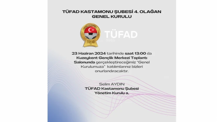 TÜFAD Kastamonu Şubesi Yönetim Kurulu Adına başkan Selim Aydın yaptığı açıklamada; “Genel kurulumuza katılımınız bizleri onurlandıracaktır” ifadelerini kullandı.