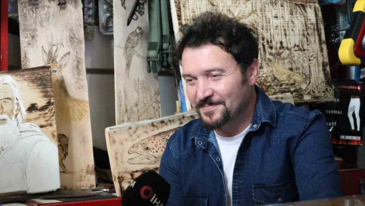 Doğaya yakın bir yerde büyüdüğünü ifade eden Abdulkadir Yeniyapı, 'Ben doğaya yakın bir yerde büyüdüm. O yüzden hep doğanın içinde olduğum için bunları yaşadım. Gördüm yani. Herhangi bir ağaca sanat işlemeyi severek yapıyorum. Tahtayı bile güzel bir şekilde işleyerek sanata dönüştürebiliyorum yani. Bakarak çizdiklerim de var, bakmadan da çizebiliyorum. Daha önce kara kalem çalışmalarım falan oldu. Elimden geldiğince bir şeyler yapıyorum. Yani destekleyen de oluyor, alan da oluyor, elimdekilerin bir kısmını sattım. Hediye de ettiğim oldu. Benim özel yakı aletlerim var. Değişik uçlar var, ucuna taktığım onları değiştirip değiştirip değişik şekillerde çizim yapabiliyorum' dedi.