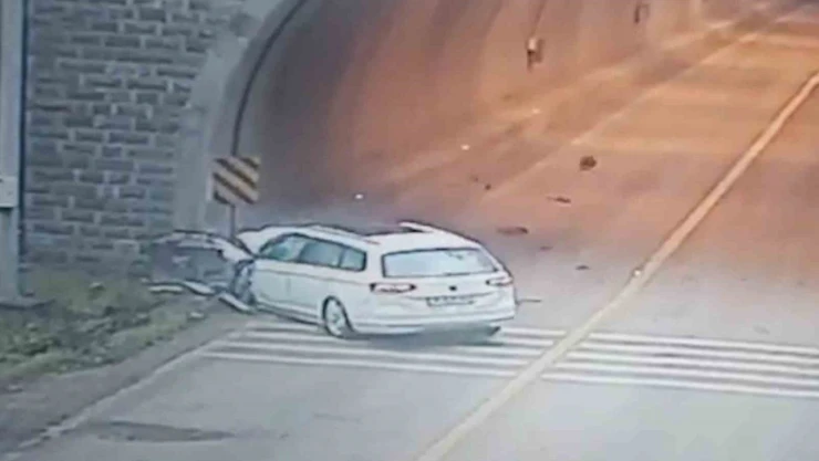 Karabük’ün Yenice ilçesinde sürücüsünün kontrolünden çıkan otomobilin tünel girişindeki kaldırıma çarpması sonucu 1 kişi öldü 2 kişi de yaralandı. Kaza anı güvenlik kamerasına yansıdı.