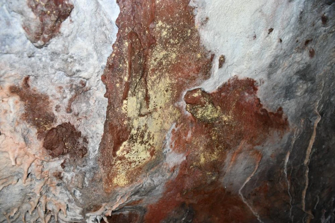 Tümülüsü andıran tepe içerisinde yer alan ve altın rengi sarkıtların bulunduğu mağara, görenleri hayran bırakıyor.