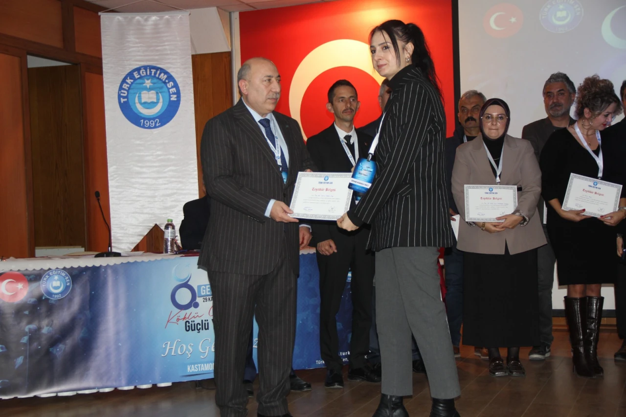 Genel kurulda Türk Eğitim-Sen Genel başkanı mesajı okundu. Emekli olan Sıtkı Önder’e ve emekli olacak olan Orman Macakoğlu’na plaket ve 30 Sendika Üyesine sendikal faaliyetlerde hizmet veren Türk Eğitim-Sen Kastamonu Şube Başkanlığında özverili hizmetlerinden dolayı katılımcı protokol tarafından teşekkür belgesi verildi.