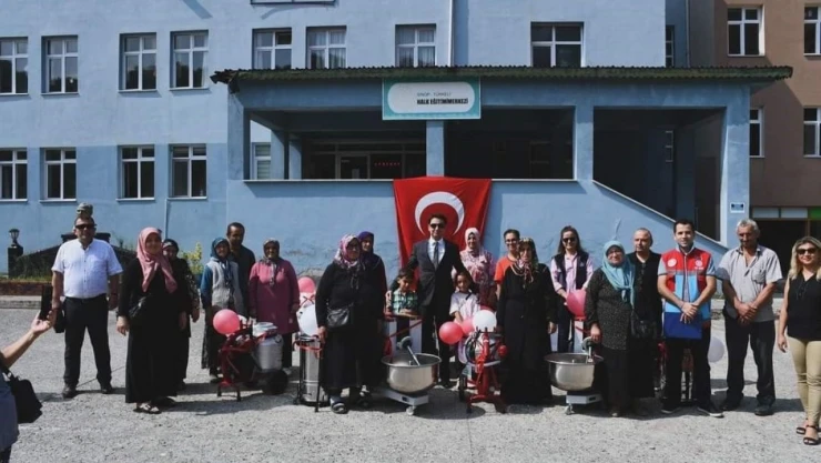 Sinop’ta yürütülen emekçi kadınlara yönelik makine-ekipman desteği programı kapsamında, Türkeli Kaymakamlığı Sosyal Yardımlaşma ve Dayanışma Vakfı tarafından 10 emekçi kadına süt sağma makinesi, hamur yoğurma makinesi ve yayık makinesi teslim edildi.