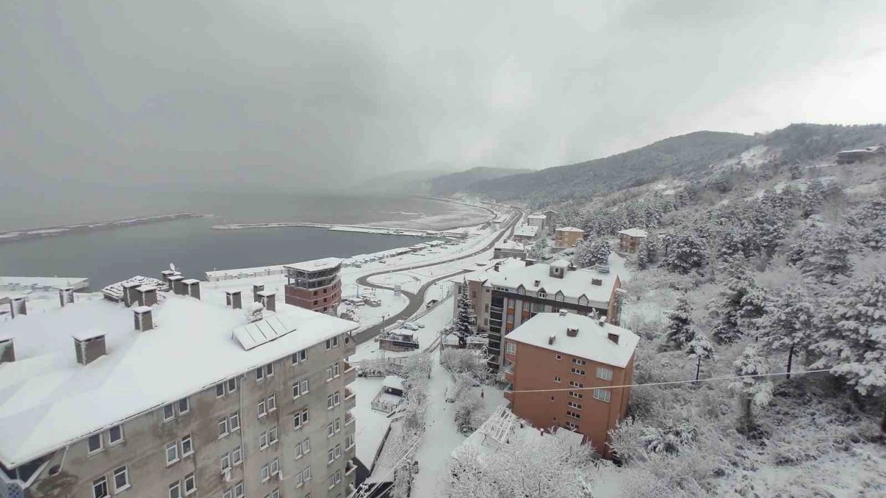 Sinop'un Türkeli ilçesinde, iki yıl aradan sonra ilçe merkezine kar düştü.